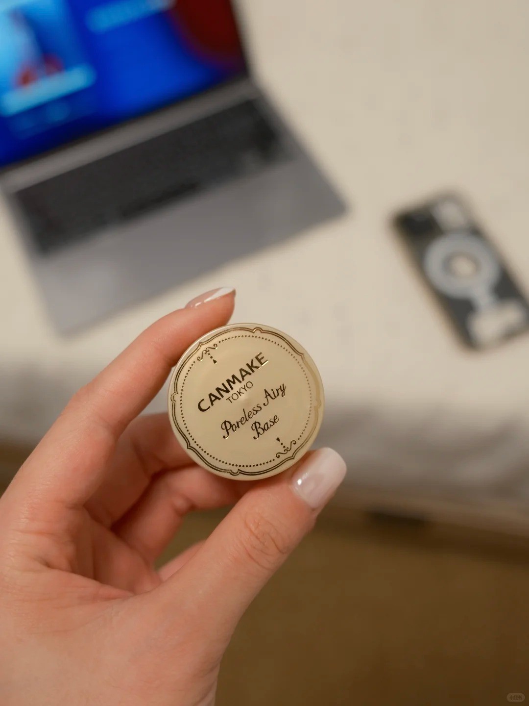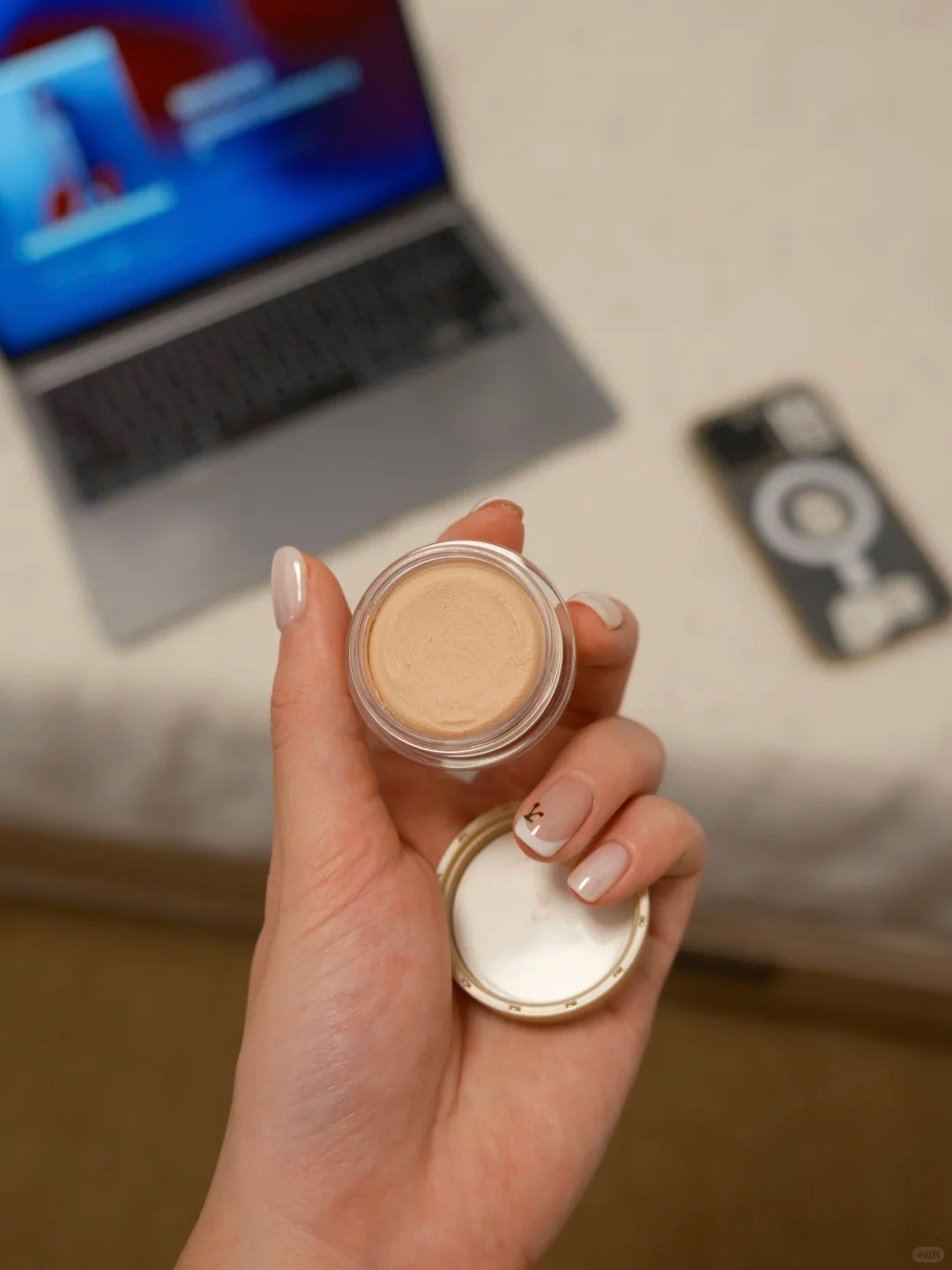 涂粉底前会在鼻子面颊涂上薄薄一层