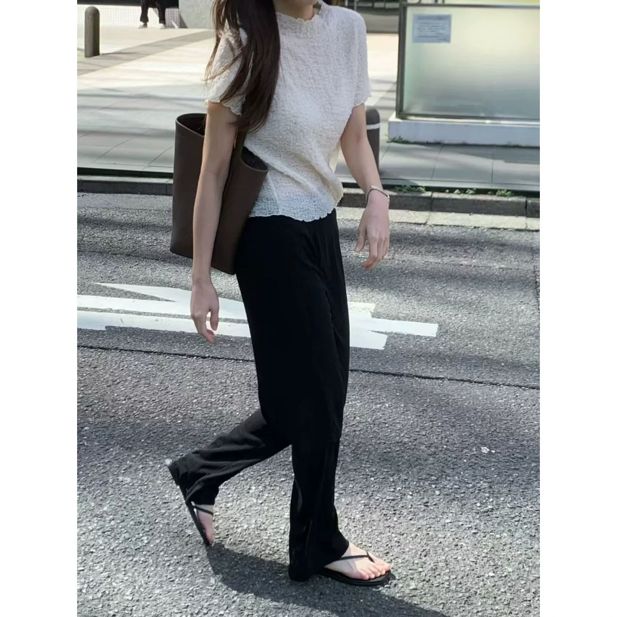 韩国女装 时尚 松紧腰 直筒 休闲裤