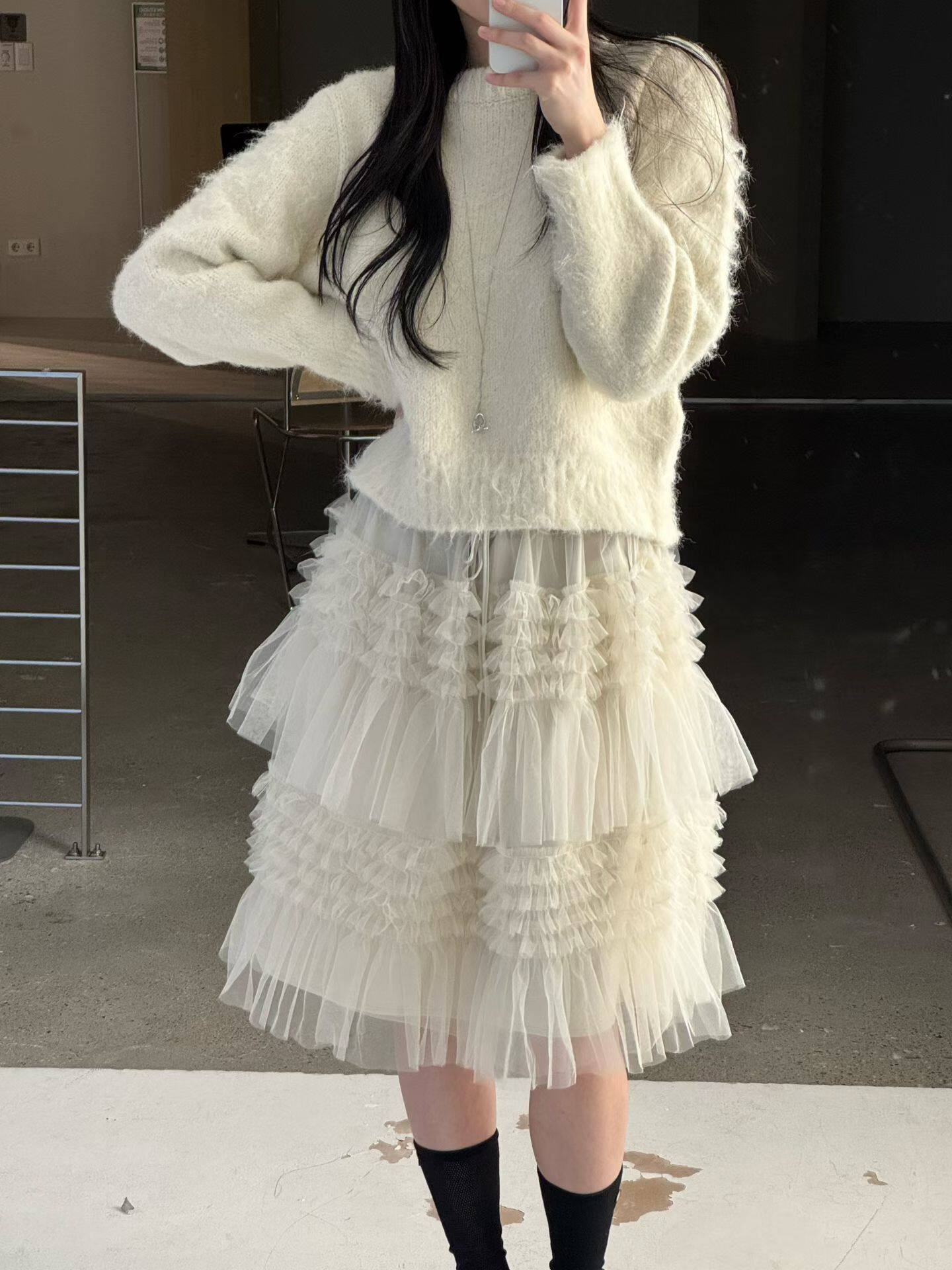 韩国女装 MORE THAN YESTERDAY 减龄 蓬蓬裙 半身裙 白色
